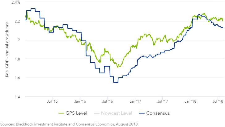 Alla oleva Markkinaympäristöstämme löytyvä BlackRockin talouskasvuennuste (vihreä viiva) kertoo siitä, että ekonomistit tulevat korjaamaan omia ennusteitaan (sininen viiva) tulevina kuukausina ylös päin. Viitteitä tästä on jo USA:ssa, jossa kuluvan vuoden kasvuennustetta on nostettu 2,6 %:sta 3,0 %:iin. Lisää ennakoivia indikaattoreita löytyy Markkinaympäristö-osiosta.