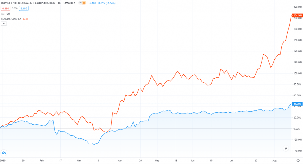 Helsingin pörssissä on kaksi varteenotettavaa pelialan yhtiötä: legendaarinen Remedy ja vihaisista linnuista tunnettu Rovio. Remedy listautui vuonna 2017 ja osake on ollut pörssin parhaimmistoa. Rovio listautui myös vuonna 2017, mutta on ollut sijoittajille iso pettymys. Nyt yhtiö on vihdoin saamassa vitosvaihdetta silmään ja osake on ollut kuluvana vuotena pörssin parhaimmistoa.