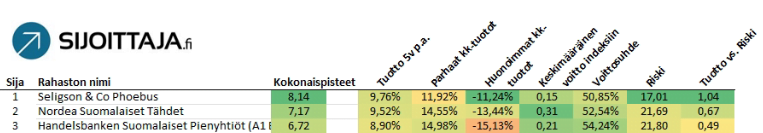- Mitkä ovat tavallisen rahastosäästäjän näkökulmasta Suomen parhaat rahastot