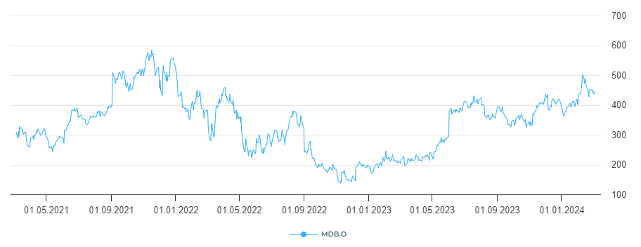 Tilikauden 2024 viimeiselle neljännekselle MongoDB odottaa kokonaisliikevaihdon olevan välillä $429,0–$433,0 miljoonaa ja Non-GAAP liikevoiton olevan välillä $35–$38 miljoonaa. MongoDB julkaisee tilikauden 2024 viimeisen neljänneksen tuloksen 7.3.2024.