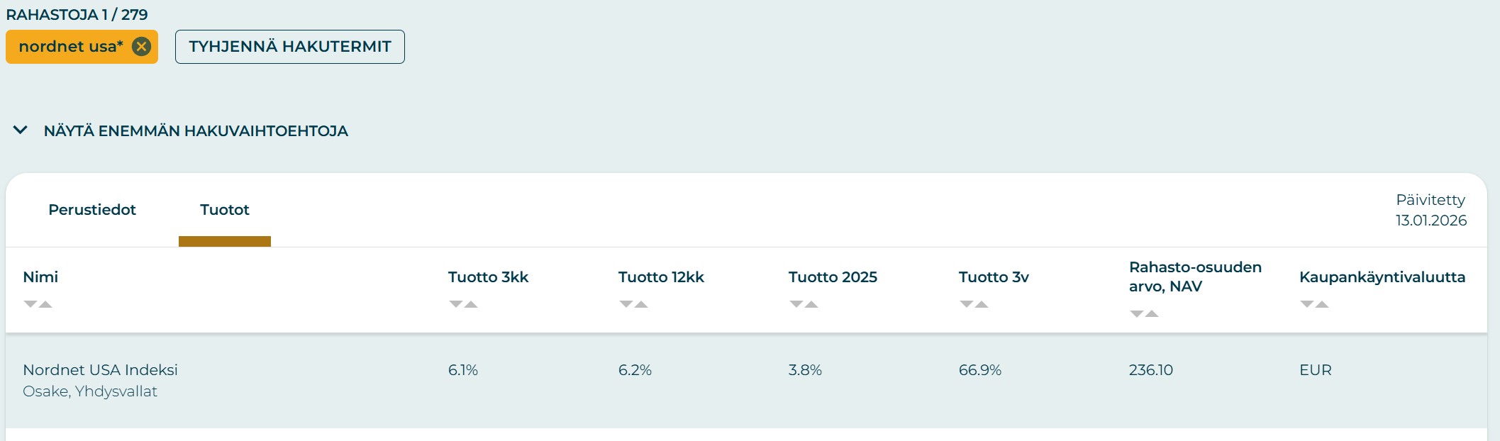 Nordnet USA Indeksirahasto* -nimellä kulkeva rahasto löytyy Rahastotyökalustamme, jossa voit helposti vertailla sitä muihin kotimaisiin noteeraamattomiin rahastoihin.