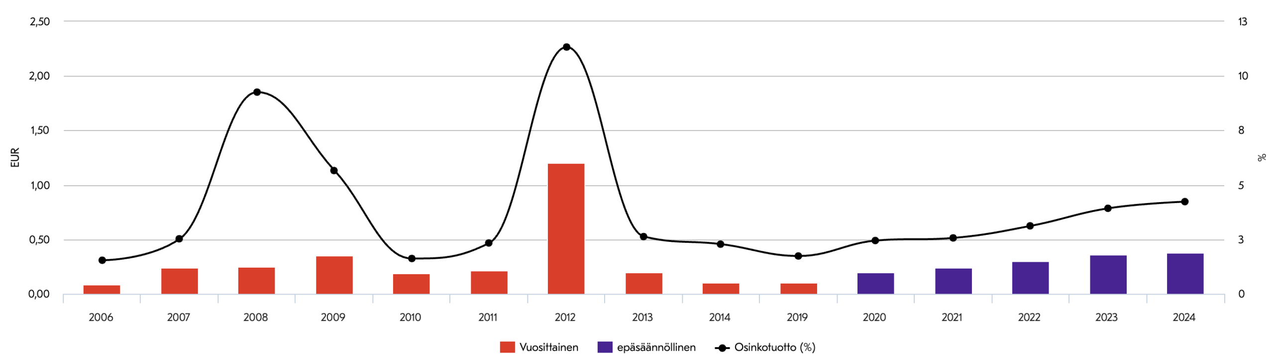 - Vuotuinen osinko vähintään 50 % osakekohtaisesta tuloksesta