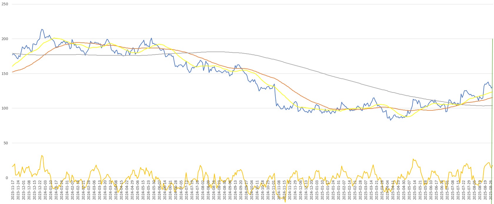 - Kehittämämme treidityökalu antoi signaalin ”ostoidea” Vestasille 28.8.2025 päätöskurssilla