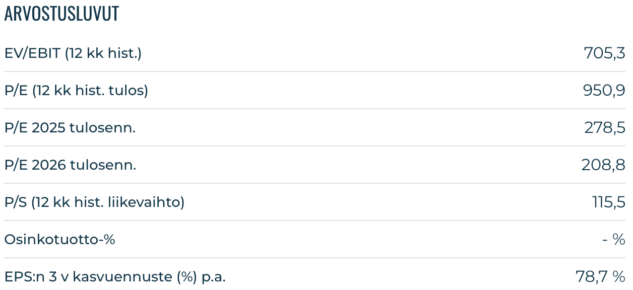 | P/E 2025e / 2026e | 278,5 / 208,8 |