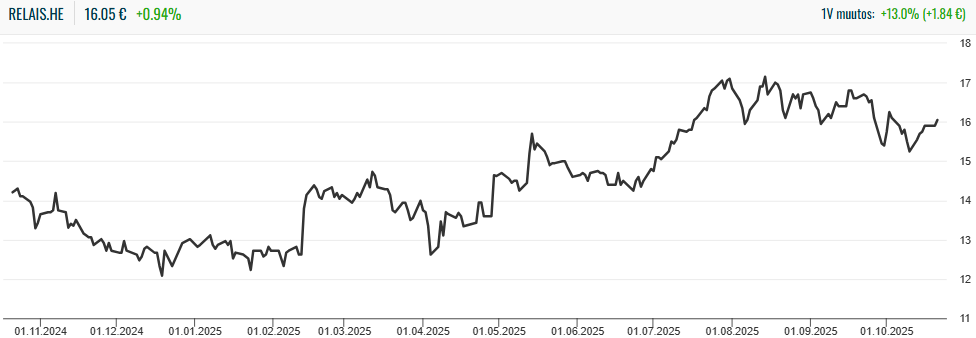 Juuri ennen heinä-syyskuun osavuosikatsauksen julkaisua, Relais Group julkaisi tiedotteen, jossa se ilmoitti yhtiön hallituksen päättäneen jakaa yhtiökokouksen valtuuttaman 0,20 euron lisäosingon osaketta kohden. Ylimääräinen osinko irtoaa huomenna 23.10. ja se on määrä maksaa osakkeenomistajien tileille 31.10.2025.