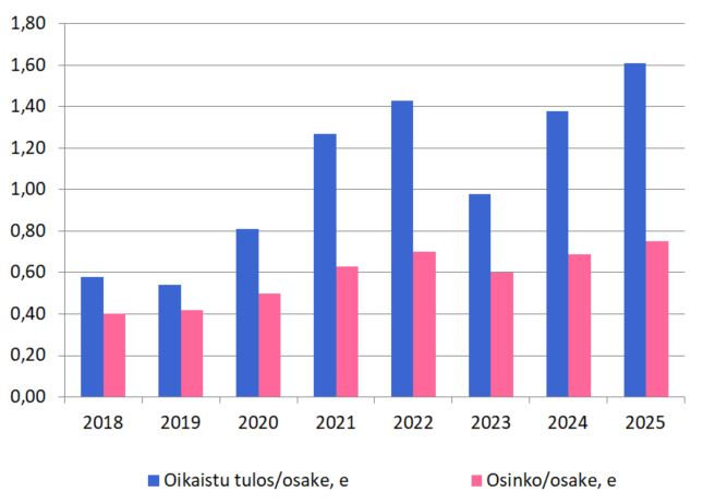 Ennakoimme jo syksyn analyysissa osingon kasvulle olevan edellytykset. Yhtiökokous päättää osingosta 23.4.2026. Viime vuonna osinko maksettiin toukokuun alkupuolella.