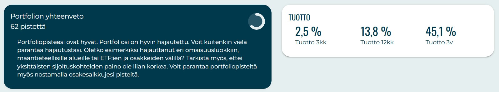 Salkku- ja Portfoliotyökalun avulla saat kehitysehdotuksia salkkusi hajautukseen, riskienhallintaan ja tuoton parantamiseen.
