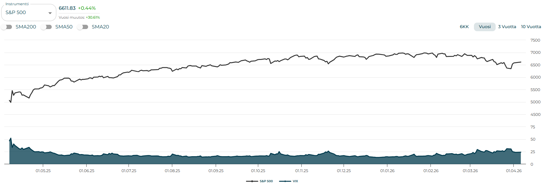 - Markkinoiden pelkokerroin VIX on koholla, mutta laskenut huipputasoista
