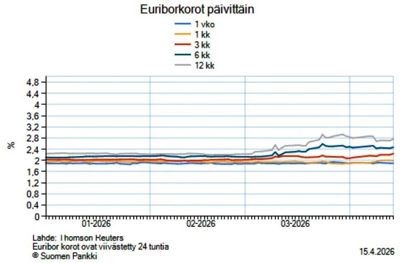 Yhtiön lainakanta ei ole kuitenkaan yhtenäinen massa, vaan se koostuu vaihtuvakorkoisesta, korkosuojatusta ja kiinteäkorkoisesta osuudesta. Viitekoroista yhtiö käyttää yleisesti myös kolmen kuukauden euriboria, joka on käyttäytynyt viime viikkoina huomattavasti rauhallisemmin kuin 12 kuukauden euribor.