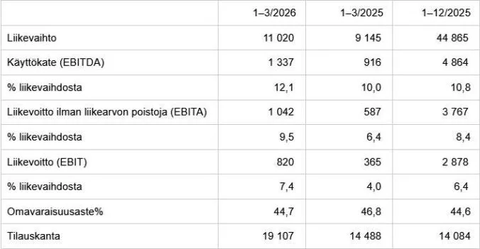 ”Yhtiö arvioi vuoden 2026 liikevaihdon olevan 49–54 miljoonaa euroa ja liiketoimintojen voiton (EBITA) 4,8–5,8 miljoonaa euroa.”