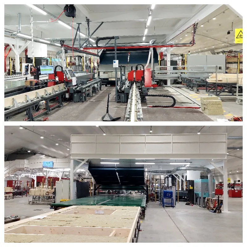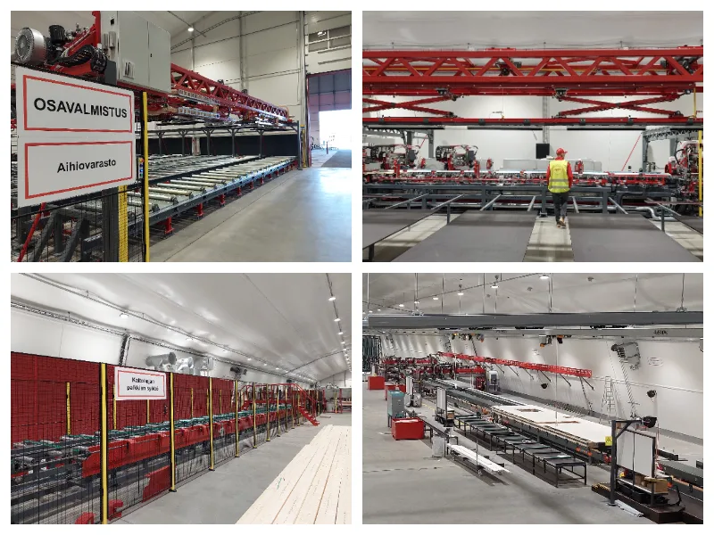Kaikki tuotantolinjat on jo asennettu. Kattoelementtijärjestelmälinja on ollut tuotannossa jo marraskuusta lähtien. Uutta seinäelementtilinjaa on ajettu ylös viikosta kuusi alkaen, mutta sitä – samoin kuin uudenaikaista osavalmistuslinjaa – optimoidaan vielä. Ulkopuoliset asennustiimit tekevät säätöjä, ohjelmointia ja testiajoja. Yhden vuoron tehokkaaseen tuotantoon tähdätään kaikilla linjoilla viikolla 19.