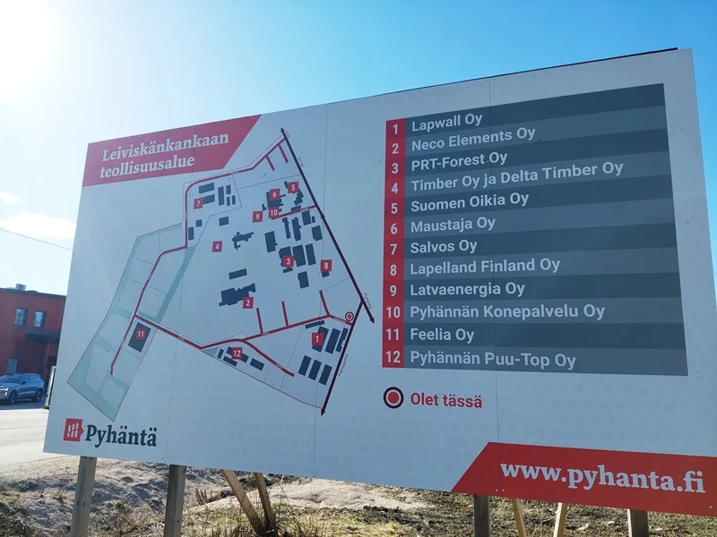 Pohjoispohjalainen vajaan 2 000 asukkaan Pyhännän kunta Oulun eteläpuolella on todella vireä tehdaspaikkakunta. Sen osoittaa jutun lopussa oleva Leiviskänkankaan teollisuusalueen esittelytaulu. Aluetta reunustaa Pyhännänjärvi.