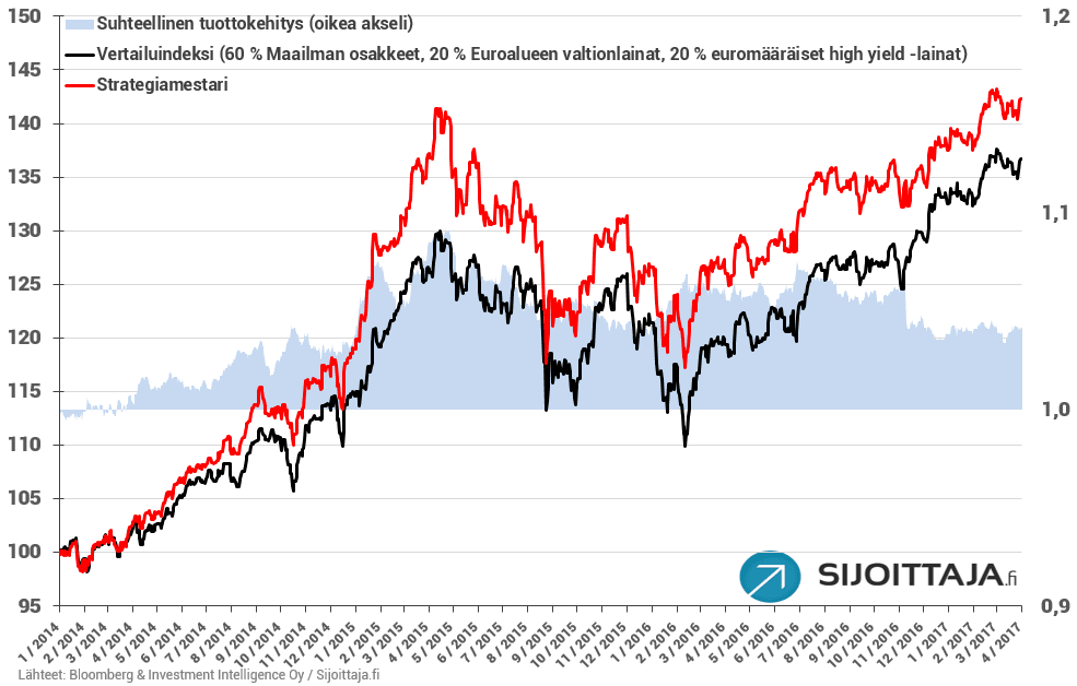 Strategiamestari-mallisalkku nousi maaliskuussa +0,1 % ja vertailuindeksi nousi 0,2 %. Strategiamestari on kuluvana tuottanut +3,5 % ja vertailuindeksi 3,2 %. Myös strategiamestaria on muokattu vastaamaan tämän päivän markkinoita.